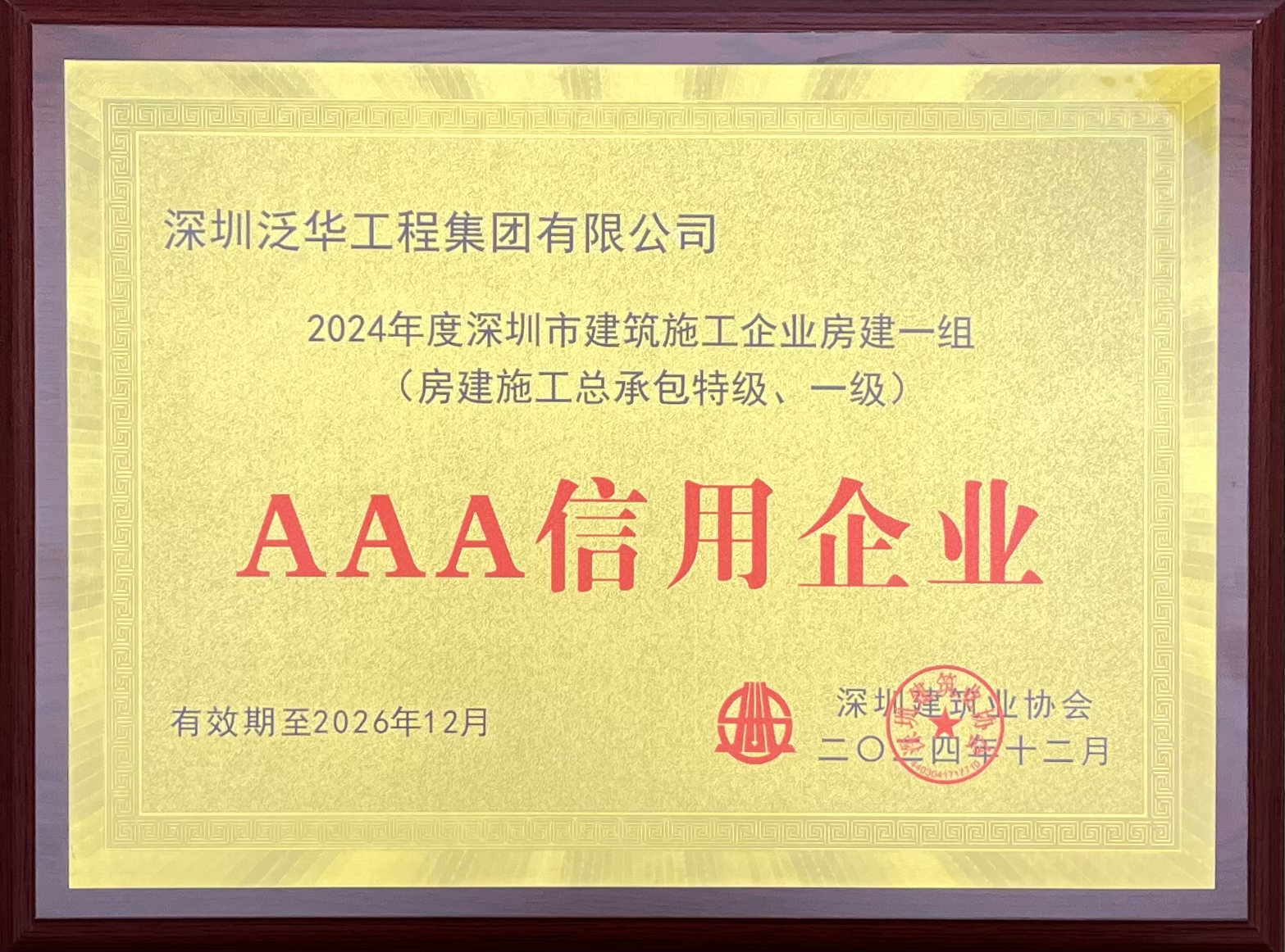 一元复始,万象更新。近日,我司再次荣获深圳市建筑业协会颁发的2024年度深圳市建筑施工企业房建一组(房建施工总承包特级、一级)“AAA信用企业”荣誉称号!