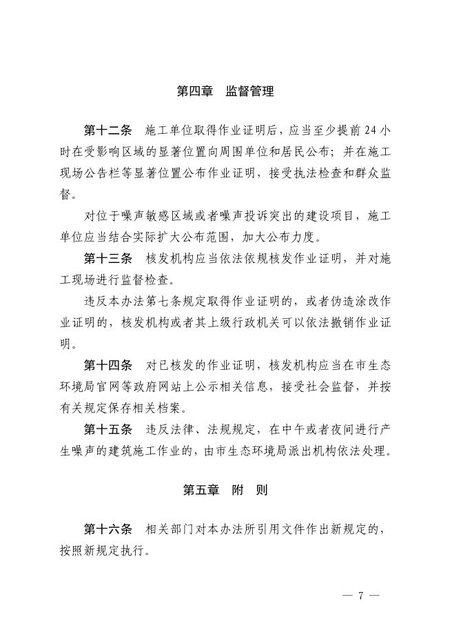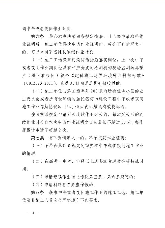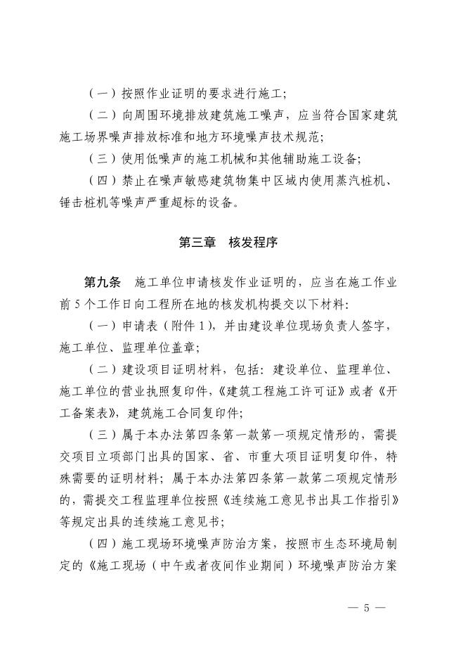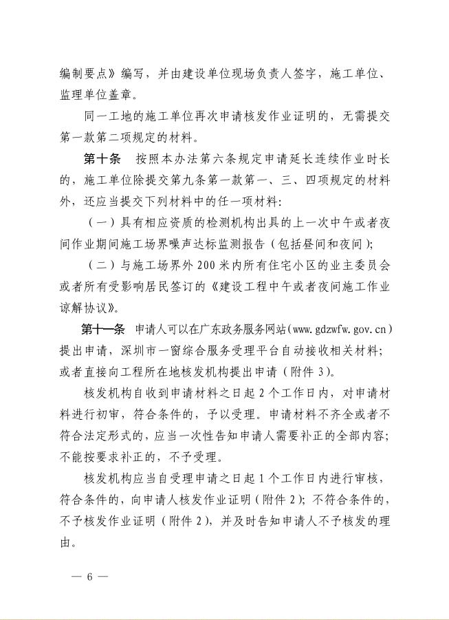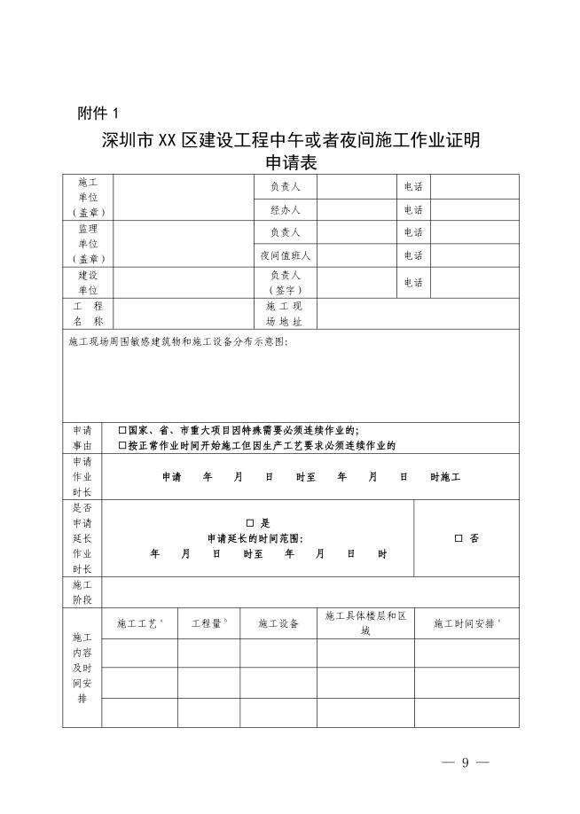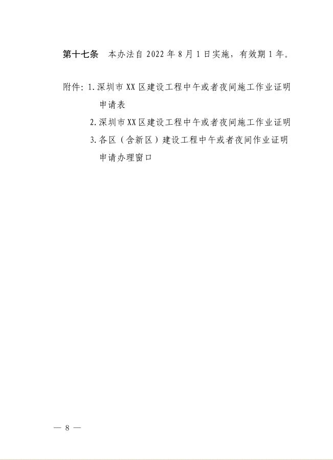 为进一步规范我市建筑工程中午或夜间施工作业证明核发工作,根据《中华人民共和国噪声污染防治法》、《深圳经济特区环境噪声污染防治条例》、《关于加强建设工程安全文明施工标准化管理的若干规定》(深建规〔2018〕5 号)等规定,结合本市实际,深圳市生态环境局制定了《深圳市建设工程中午或者夜间施工作业证明核发管理办法(试行)》,现予转发,请遵照执行。