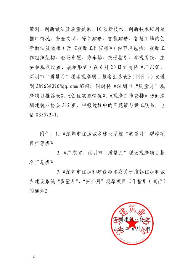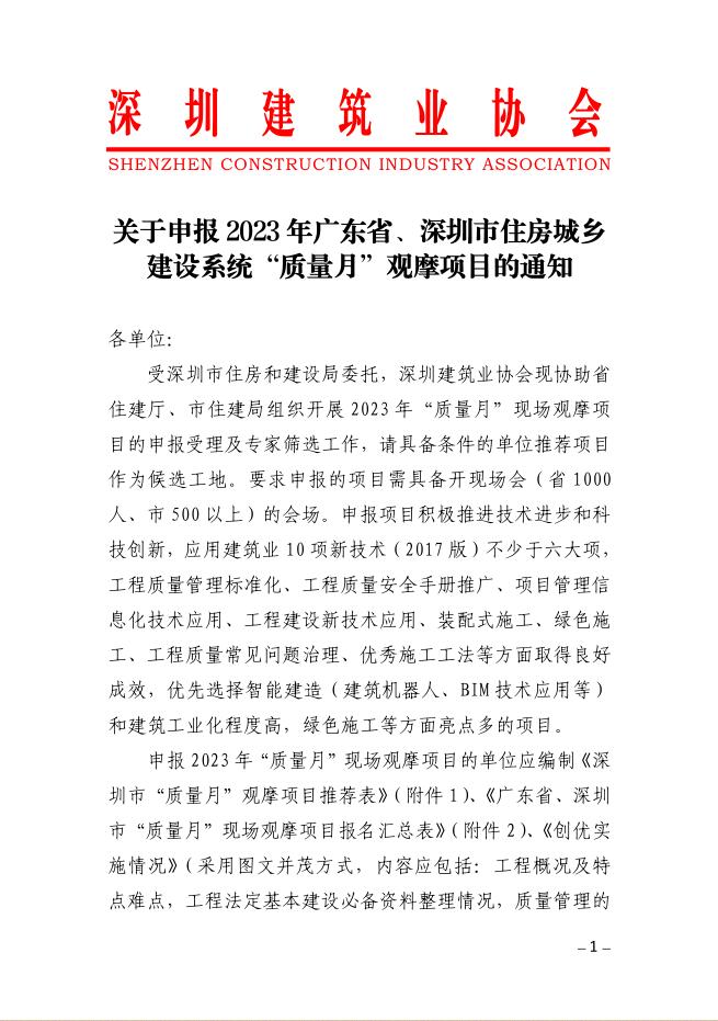 转发《关于申报2023年广东省、深圳市住房城乡建设系统“质量月”观摩项目的通知》