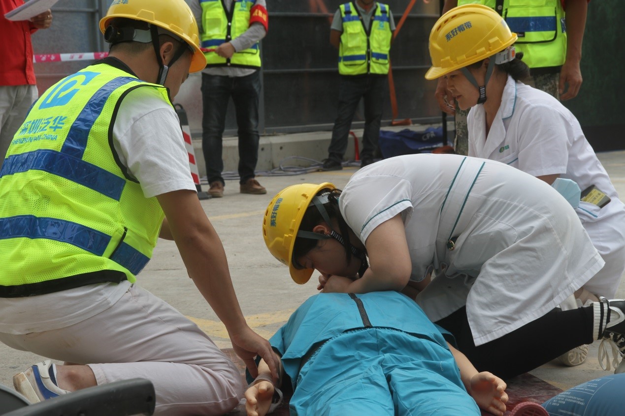 下午3时10分,公司安全部经理吉笑波宣布演练正式开始。整个演练活动内容包括高处坠落、触电、脚手架坍塌、火灾、有限空间事故共5项模拟事故。在各项目演练过程中,演练人员按照应急预案的要求分组进行巡视、警戒、疏散、物资保证、抢险、医疗救护等工作,各小组有序地协同配合,顺利完成了各项应急演练项目。