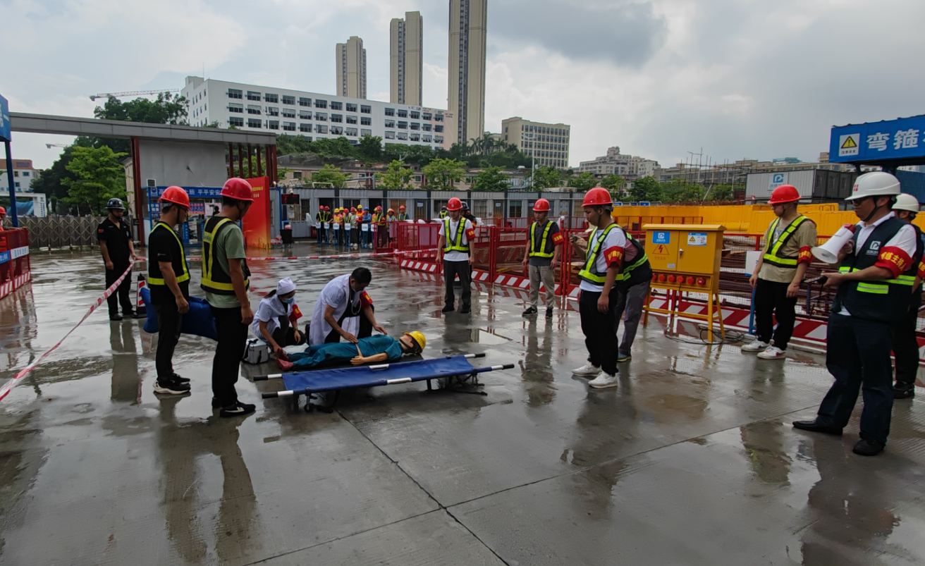 为切实保障公司全体员工生命和财产的安全,维护公司良好声誉和社会形象,积极预防和控制潜在的安全事故,并能迅速遏制事态的发展,控制事故的蔓延,降低和减少事故的危害和经济损失,进一步加强我公司应对安全生产突发事故的综合指挥能力、快速反应能力、应急处理能力和协调作战能力,提高我公司应急救援水平,全面促进救护队伍的快速化、正规化建设。2023年6月14日下午3时,公司在云望府项目部进行了综合应急救援演练活动,综合演练内容包括高处坠落、触电、脚手架坍塌、火灾、有限空间共5项模拟事故。各在建项目部项目经理、安全主任到现场观摩演练。